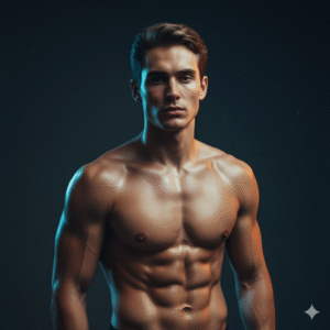 “aesthetic fitness boy edit, toned body, studio lights, strong contrast, clean muscles detail, sharp clarity, bold color grading”